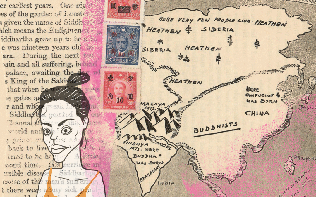 making another set of weird holiday greetings. this year i found a book in the library’s “free” bin called the story of mankind. it had wonderful hand-drawn maps and the history of the human world, starting about 6000 years ago with the first written record.